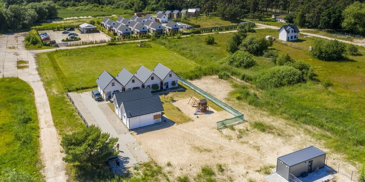 Na działce o powierzchni 3.743 m2 zbudowanych zostało w 2019 roku 6 drewnianych, dwupoziomowych domków o powierzchni ok. 70 m2.